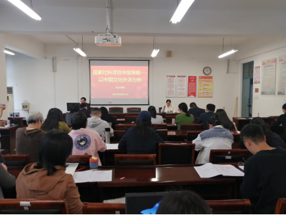 为提升教师国家社科基金项目申报能力,推动团队建设与学术研究发展,4月21日,williamhill中国官方网站邀请外交公司武波教授开展“国家社科项目申报策略—以中国文化外译为例”专题报告,副经理杜丽霞主持,全体教师参会。