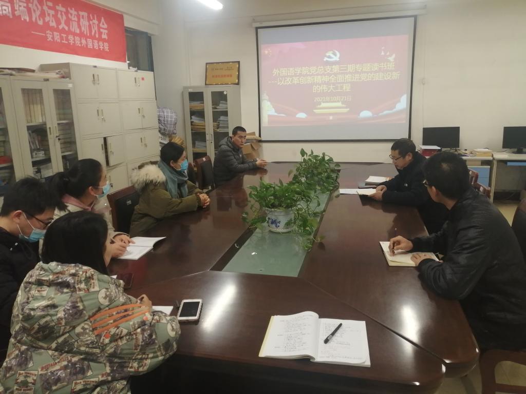 读书班上,williamhill中国官方网站党总支书记郭强领学了《改革开放简史》中“以改革创新精神全面推进党的建设新的伟大工程”。通过领学,大家对“改革开放”“马克思理论”等党史知识有了更深入的了解。
