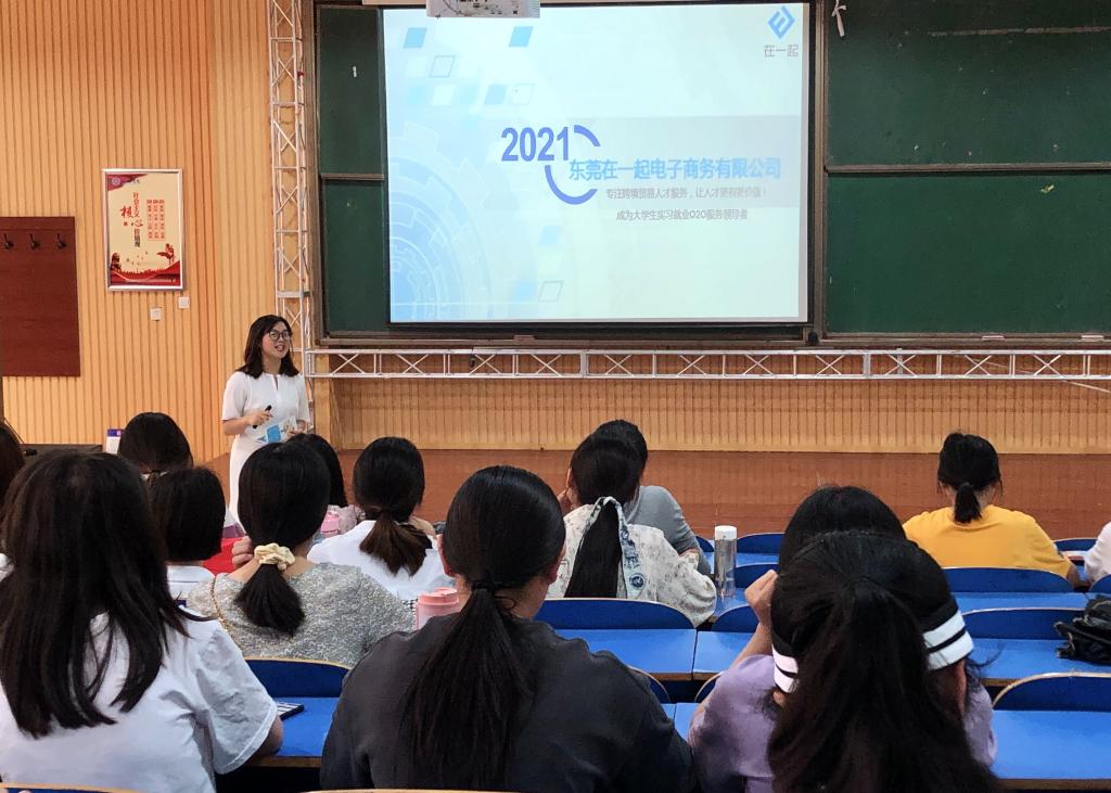 2021年5月26日上午10点,williamhill中国官方网站邀请东莞在一起电子商务有限公司在A18-201教室举办企业宣讲会,2021届毕业生代表参加本次宣讲会。