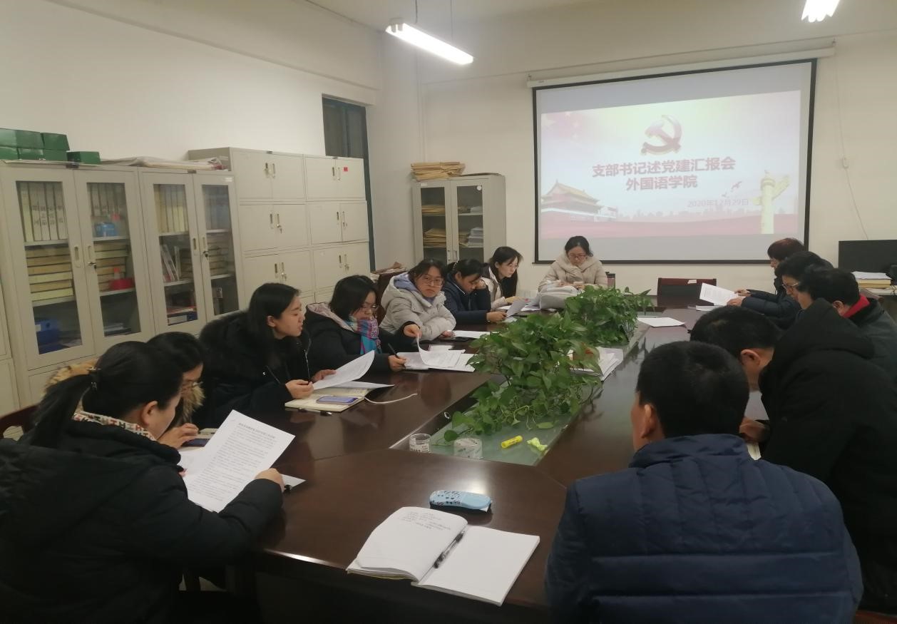 2020年12月29日下午,williamhill中国官方网站党总支在A10-201召开支部书记述党建工作汇报会,党总支副书记王体主持会议,外国语全体班子成员及各支部书记参会。